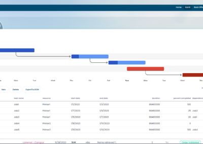 Moreover, our application offers a Gantt view of the entire job execution planning, enabling users to visualize and manage the scheduling of all printing tasks. This feature facilitates effective resource allocation, minimizes bottlenecks, and ensures timely project completion.