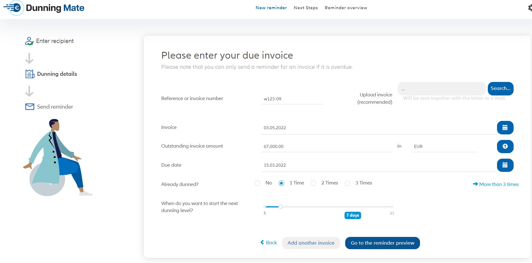 Effortlessly escalate unpaid customer invoices to the next level with predefined parameters and processes, ensuring a systematic and efficient dunning