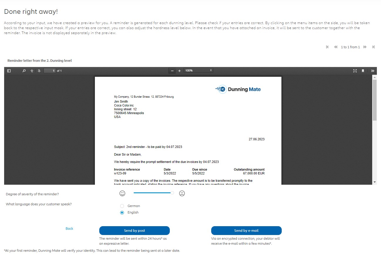 We understand that in some jurisdictions, physical mail is still necessary for legal compliance. That’s why our app goes the extra mile by generating printed letters that can be sent via regular mail. Rest assured that our application is designed to adapt to various legislation requirements, providing a compliant and seamless dunning experience.