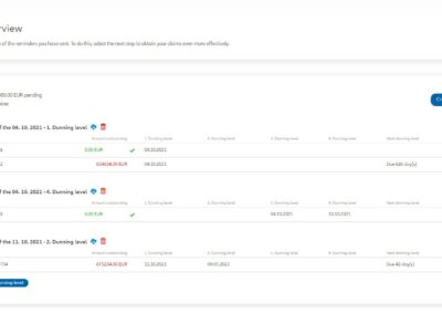 With our comprehensive set of functions, you can easily track and monitor the progress of the dunning process. Accelerate or interrupt the process as needed, ensuring a dynamic and proactive approach to collecting outstanding payments. Stay on top of your cash flow and minimize the impact of overdue invoices on your business.