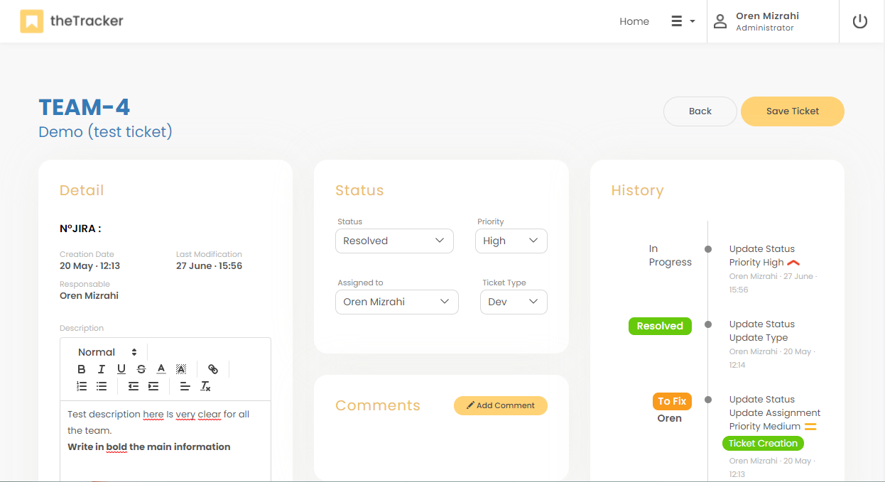 The Tracker is a simple and effective ticketing tool for managing support requests and tracking tickets. Essential for managing your projects and handling customer requests.
